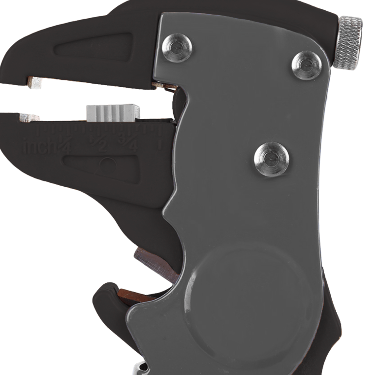 Works with single-conductor to 14 Gauge stranded or solid wire and will save you time and effort! This 2-in-1 wire stripper and cutter with adjustable pressure (tension) mechanism to match varying hardness & thickness of insulators provides a clean strip without damaging the conductor. Handy separate cutting jaws work with a simple squeeze - even when used with gloves. The adjustable stop provides consistency in wire strip lengths along with a replaceable blade system. Simply insert amount of wire to be stripped & give it a squeeze. The Wire Stripper Pro will even strip multi conductor flat wire up to a 1/2” wide. WireStripper Pro is not for use with Teflon or asbestos insulation.